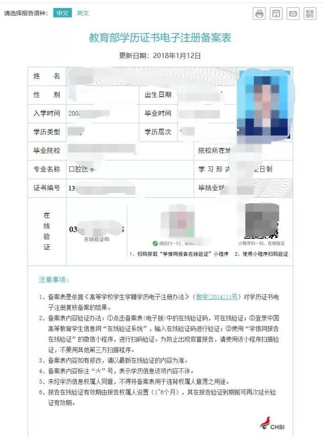 1、空白,没有学历电子注册备案表,这种情况需要申请,一般都是申请中文版的。
