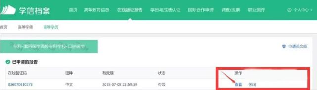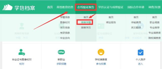 第四步:登录成功后,点击“在线验证报告”里面的“高等学历”
